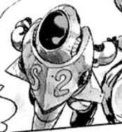 ACT2の頭部・背面・脚部はACT1と同じく殻で覆われ、特に背面からぐるりと前方に回り込んで、こめかみから上腕までを包み込む、甲羅のように大きな殻は非常に目立つ(この殻の背面には大きく「S2」と書かれている)。また尻尾の先端にはACT1には無かった、槍の穂先のような形の塊が新たに生じている。