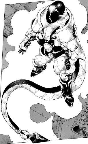 - 最終形態(人型)。太鼓の膜を叩いて凹ませるように「重力場」を殴って凹ませることで、対象に「重さ」を与えることができる。