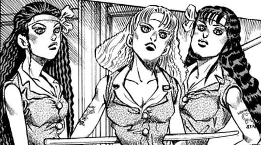 また彼は甘いマスクを持つナルシストであり、彼をアイドルのように惚れ慕う3人の暴走族仲間の女性と常につるんでいる。そして彼はこの3人の女性だけでなく、杜王町の大地に宿る「木と土の王」にも愛されている。ハイウェイ・スターが「木と土の王」と深くリンクした能力を持つのはそれが理由なのであるが、それについてはまた別頁で解説する。