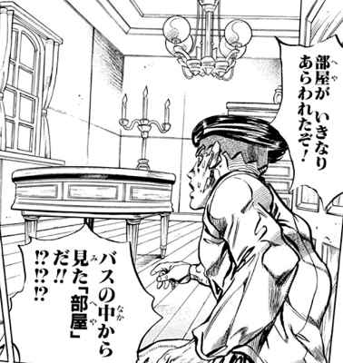 この部屋ができたもともとの理由はおそらく、事故を起こした噴上裕也が意識不明で病院に運ばれる際に、ハイウェイ・スターが「木と土の王」とのリンク状態を保つためにトンネルに残ろうとし、その滞在場所として作られたと考えられる。しかしその後でこの部屋には「木と土の王」によってもう1つの役割が与えられる。それは「養分」を持つスタンド使いをおびき寄せる「罠」としての役割である。