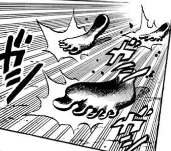 ちなみにこの時速60kmという速さはおそらく、人間やチーターの限界走行速度がその肉体構造に依存するのと同じく、ハイウェイ・スターの構造とパワーに依存したものである。足跡型のスタンドの群れは、互いに引力を働かせてゆるやかな一つの塊となって走行し、一つの足跡が地面を蹴るとそれは塊全体を前方に押し出す力となる。