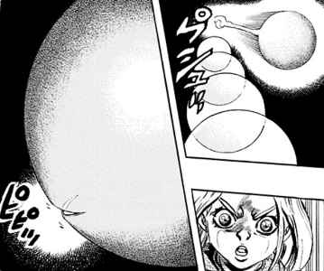 キラークイーンの「怨霊のエネルギー」はこのような空気に宿る知性との混合・反応により解放され、爆発を起こすのである(それはさながら、あり余るエネルギーを芸術などの実のある形に昇華できない者が、白いキャンバスに対して起こす癇癪のようでもある)。