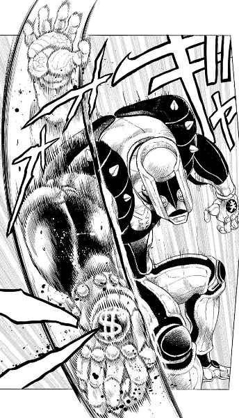 - 虹村億泰のザ・ハンドは、スタンドの右手の平に「混沌化した空間のパワー」を集中させ、それで現実世界の空間を破壊する。