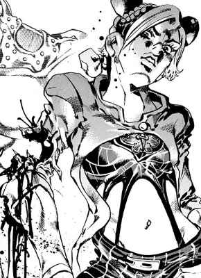 その戦いは、他の部の男性主人公のそれと比べても非常に激しいものである。彼女の肉体は時に隕石に貫かれ、時に手足の表裏を反転させられ、戦いのたびに深く傷つく。