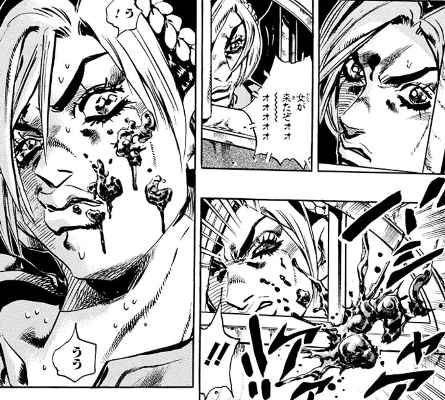 徐倫は苛烈な戦いで負った深い傷を、仲間であるF・Fの万能細胞的なスタンド能力で埋めてもらったり、自分のスタンド「ストーン・フリー」の糸で縫ったりして応急処置を行う。だがそれらはいずれも完全な治癒を望めるものではなく、傷とダメージは肉体に蓄積されていく。