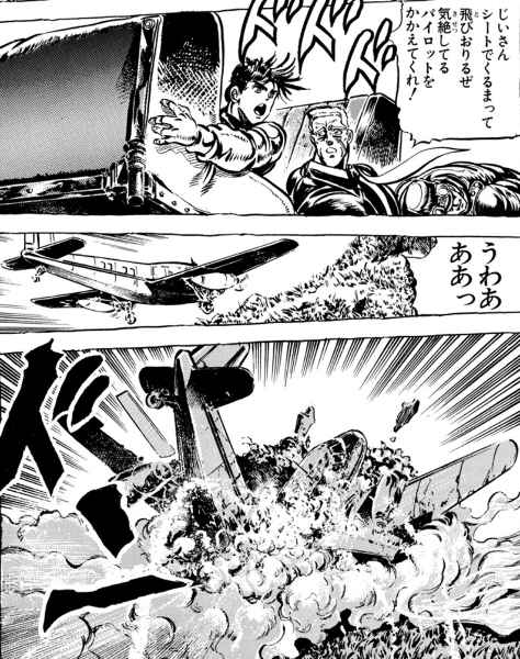 ただ現実的な理由としては上記のとおりだが、それとは別にジョジョという作品を寓意的な視点から見た場合、「ジョセフ」と「飛行機」を結びつけたこの冗談には必然性がある。