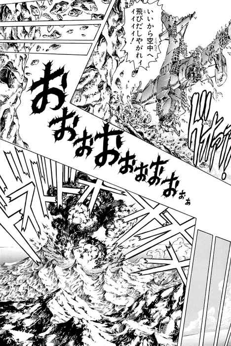 つまりジョースターの血統においてジョセフは、「空に至ろうとして失敗したジョースター」なのである。そしてジョセフの魂は「空」よりも「地上」を指向している。それを踏まえれば、ジョセフが乗った飛行機が地に引き寄せられるかのように墜落するのは、彼に似つかわしい事象といえるわけである(そしてそれを皮肉るのが「空に至ったジョースター」である承太郎というのもまた似つかわしい)。
