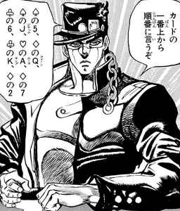 片や承太郎はダービー兄とのポーカー対決では、数秒の間に見たトランプ50余枚の並びを全て記憶するという超人的芸当を見せている。これにも承太郎の精神に備わる「ノイズの高速除去」の性質が大きく関わっている。