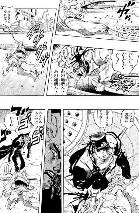承太郎は3部ラストバトルのDIOとの戦いの途中で、あの手この手で逃亡しようとするDIOに追いつくため、DIOが逃げ込もうとしたマンホールの中に先回りするという行動を取っている。