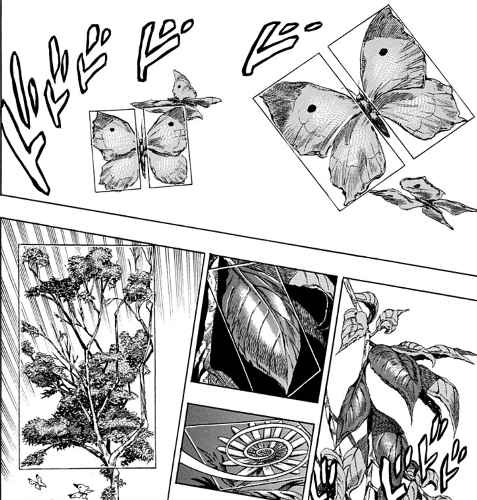 そしてその研究過程でカーズはジャイロ・ツェペリのように、動植物に宿る「黄金長方形」(あるいはそれと同等の何か)が見えるようになったと考えられる。