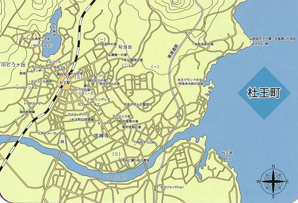 ただその一方でこの地図の、「ぶどうヶ丘高校」や「カフェ・ドゥ・マゴ」の場所は、原作とは明らかに異なる(そしてなぜか「サンジェルマン」がぶどうヶ丘高校の場所にあったりする)。