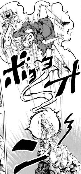 杜王町東の沿岸部にある別荘地帯での広瀬康一と山岸由花子の戦いの終盤、誤って崖から落ちた由花子を、康一のスタンド「エコーズACT2」が落下地点の尖った岩にトランポリンのような効果を与えて弾き返し、由花子を無傷で崖上へと戻す。