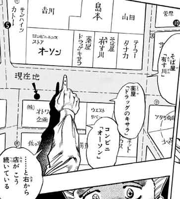19話「広瀬康一(エコーズ) その1」に描かれた地図。俯瞰図でない地図としては作中で最初のもの。