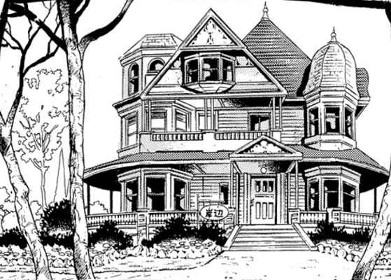 週刊少年ジャンプの連載漫画家にして「ヘブンズ・ドアー」のスタンド使いでもある岸辺露伴の自宅兼仕事場。近所の住民にはけっこう有名。敷地103坪、7LDKプラス屋根裏部屋。のちに火災を起こして半焼する。