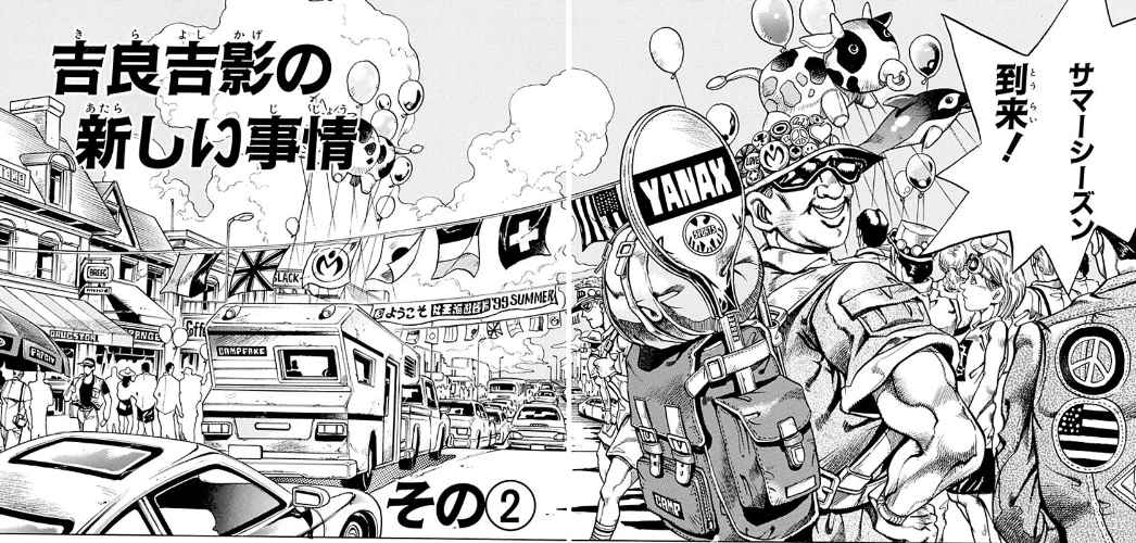 112話「吉良吉影の新しい事情」で語られたとおり、杜王町は7月1日に海開き・川開きが行われてサマーシーズンが到来し、避暑やレジャー目的の観光客で人口が2倍以上に増える。なお100話「アトム・ハート・ファーザー その1」によると、杜王町に訪れる観光客は年間20万〜30万人であるが、彼らが落とす観光収入の約7割が7〜8月に集中する。