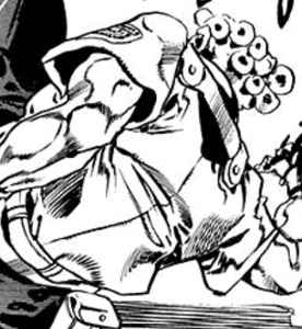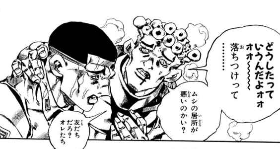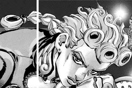 しかしそんな彼には、読者視点から見たときに、極めて目立つ特徴が1つある。それは彼の「髪型」が、ジョジョ5部の主人公ジョルノ・ジョバァーナによく似ていることである。
