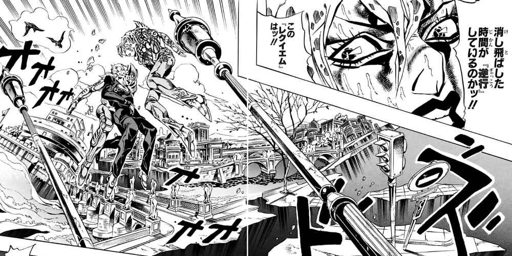 しかしジョジョ作中にはごく稀にだが、個人の器の限界を超えた超能力が登場する。その1つがジョジョ5部「黄金の風」の終盤にのみ登場する、「レクイエム(鎮魂歌)」と呼ばれる力である。