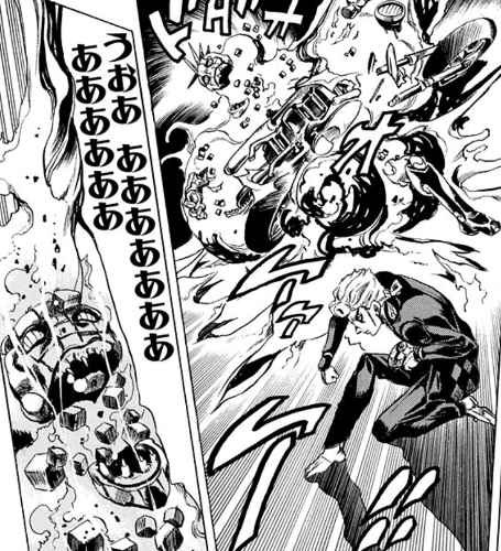 つまりスタンドは物質側にパワー負けしても物質を「透過させる」だけでダメージを負うことはない。このためスタンドはスタンドでしか倒せないのである。