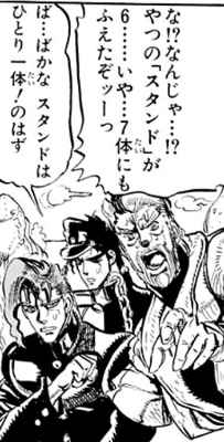 初出は3部1話「悪霊にとりつかれた男」。空条承太郎から出た「悪霊(スタンド)」の姿が、一般人に見えなかったことで示されている。